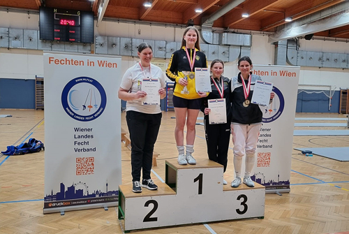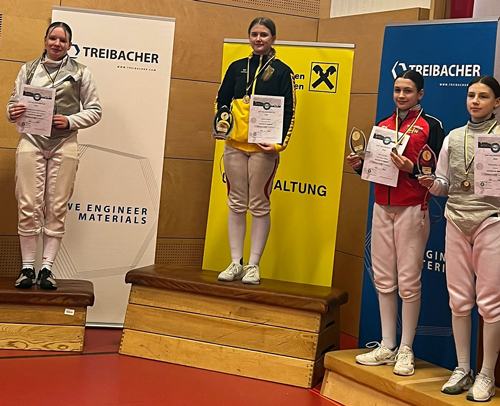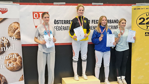 Am ersten Wettkampftag startete Martin Kain ohne Vorrunden-Niederlage ins Turnier. Auf Platz 3 gesetzt, erreichte Martin nach Siegen gegen Tobias Hinterseer und Erik Huthmann das Halbfinale. Dort startete er die Aufholjagd gegen Moritz Lechner zu spät, das 13:15 bedeutete Bronze. Bei den Damen (Junioren) startete Bianka Telatynska perfekt ins Turnier und erreichte topgesetzt die Direktausscheidung (6. Anabel Wittner, 7. Valerie Koller). Valerie scheiterte nach Sieg gegen Sofie Müller im Viertelfinale gegen Aglaya Reiner. Eine Runde später ereilte Anabel das gleiche Schicksal, mit den Siegen davor gegen Manca Vrbic (SLO, 15:7) und Maya Halden (DEU, 15:9) war mit Platz 3 aber der Podestplatz erreicht. Mit 2 klaren Siegen erreichte Bianka das Finale, aber auch hier war Aglaya heute zu stark, der zweite Platz ein gutes Ergebnis. Bei den Herren-Kadetten verhinderten knappe Niederlagen in der Vorrunde bessere Ergebnisse, Theodor und Jonathan Von See platzierten sich auf den Rängen 14 und 15. Am Sonntag fand Bianka nicht in das Turnier der Allgemeinen Klasse und wurde 11. Bei den Kadettinnen startete Valerie grandios mit 6 Vorrunden-Erfolgen, Anabel hatte eine 4/1 er Runde. In der Direkten blieb Anabel im Viertelfinale hängen, Valerie erreichte das Halbfinale, das aufgrund eines taktischen Fehlers mit 9:10 verloren ging. Der dritte Platz bedeutete den 4. Podestplatz für unseren Verein (Anabel 6.)