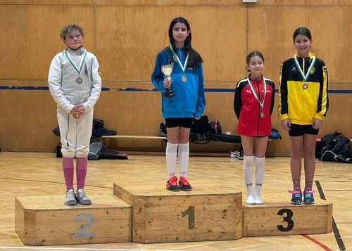 Jugend C Fechterin Romy Heinke-Sokol sorgte erneut für ein gutes Ergebnis, nach nicht weniger als 7 Vorrunden-Erfolgen ging sie top gesetzt in die Direkte.Nach Freilos und klarem Sieg im Viertelfinale muss sich die 10-jährige im Halbfinale geschlagen geben und landete somit als 3. auf dem Podest. Beim anschließenden Lego Reaktionswettkampf holte sich Romy ebenfalls den 3. Platz!